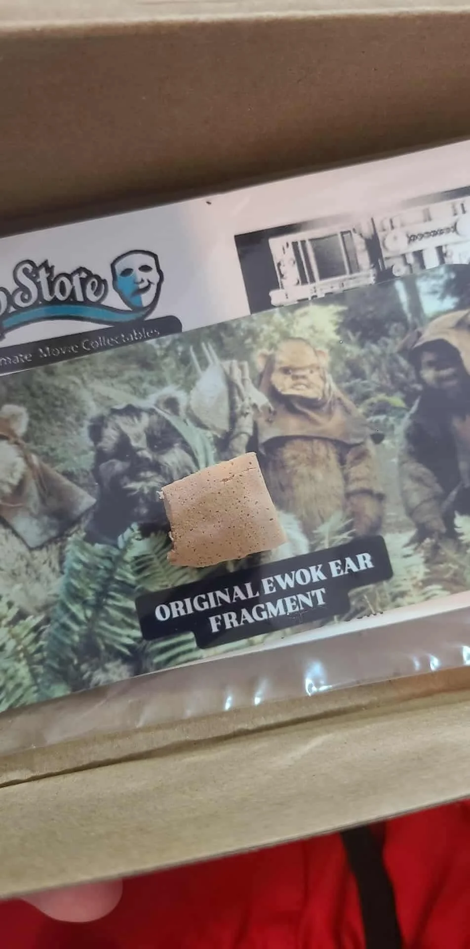 Among the treasures in my collection is an authentic fragment from the original 1977 Star Wars: A New Hope — a physical piece of the Death Star set used during filming. This rare prop was part of the intricate model work that brought George Lucas’s groundbreaking vision to life, including a section known as the “wok ear,” a distinctive detail from the miniature’s construction. Owning it is like holding a piece of cinematic history — a tangible link to the film that redefined science fiction and inspired generations.