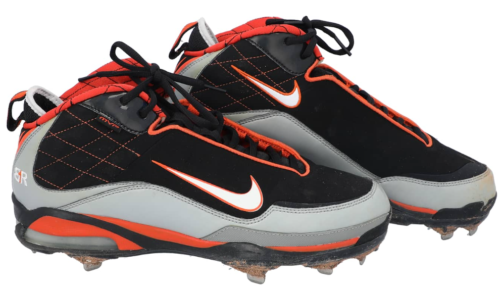 These Nike baseball cleats, accompanied by Brian Roberts’ locker tag, were worn by the former Orioles second baseman during the team’s September 21, 2008 game at Yankee Stadium, the final home game ever played at the historic ballpark.